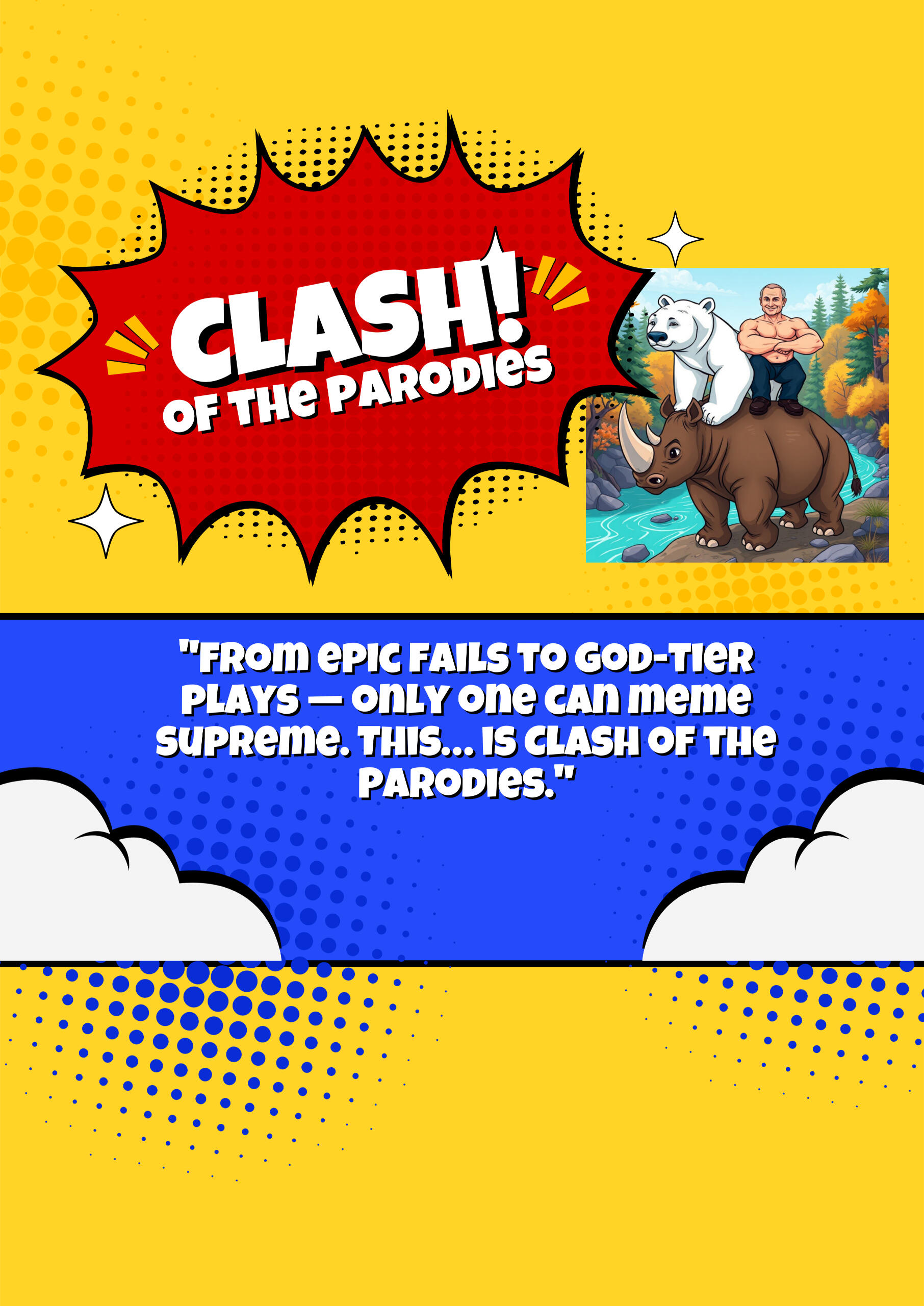 Unleash brain-melting chaos as your deranged opponents hurl lunatic attacks straight at your fragile sanity! Arm your parody warriors with the most nonsensical, universe-breaking objects imaginable and annihilate the stupidity hurled your way with even greater stupidity!